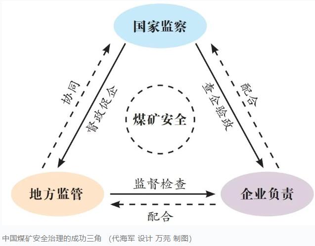 “国家监察、地方监管、企业负责”,搭建起煤矿领域大安全大应急的框架,既是应急管理组织理论的重大创新,也是法治化建设的最新成果。三者在煤矿安全治理中扮演不同角色,相互联系、相互作用,共同构成了煤矿安全治理不可分割的重要组成部分。